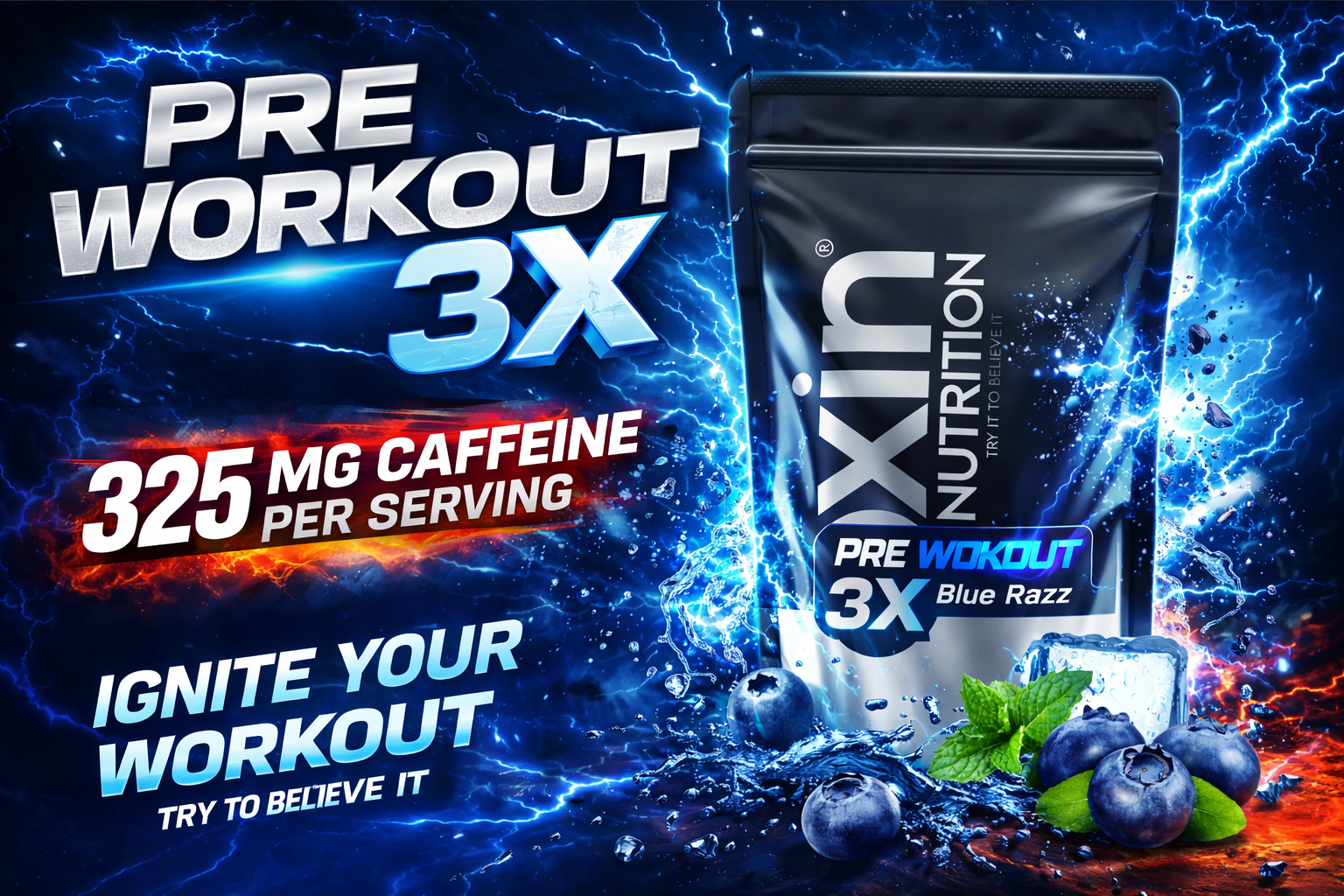 Oxin Nutrition® Pre Workout 3X Caffeinated Punch With Vitamin C - Preworkout Drink