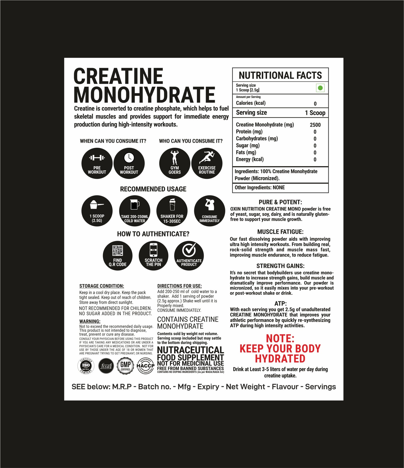 Oxin Nutrition® Creatine Monohydrate Powder 100% Pure Imported