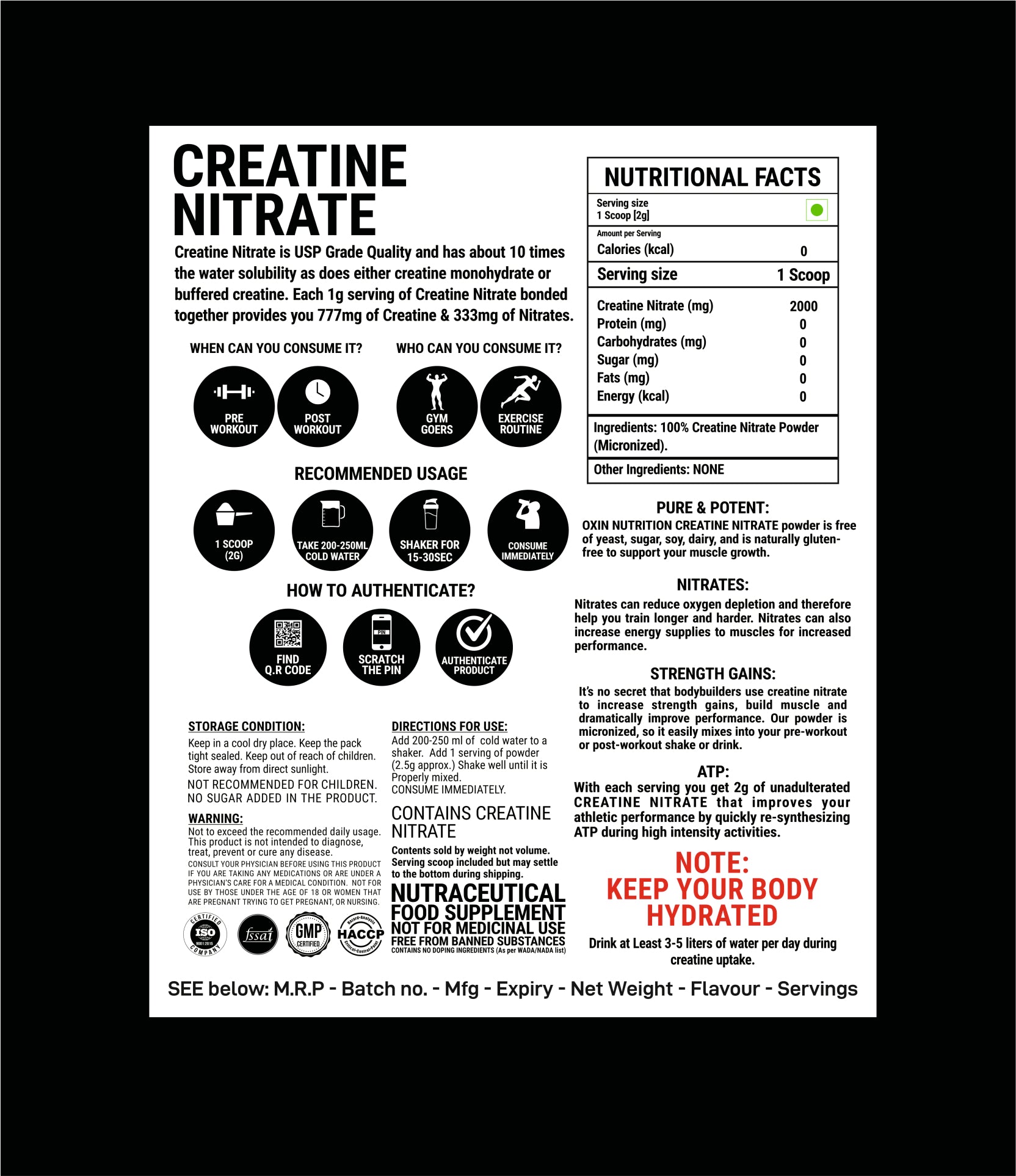 Oxin Nutrition® Creatine Nitrate Powder 100% Pure Imported
