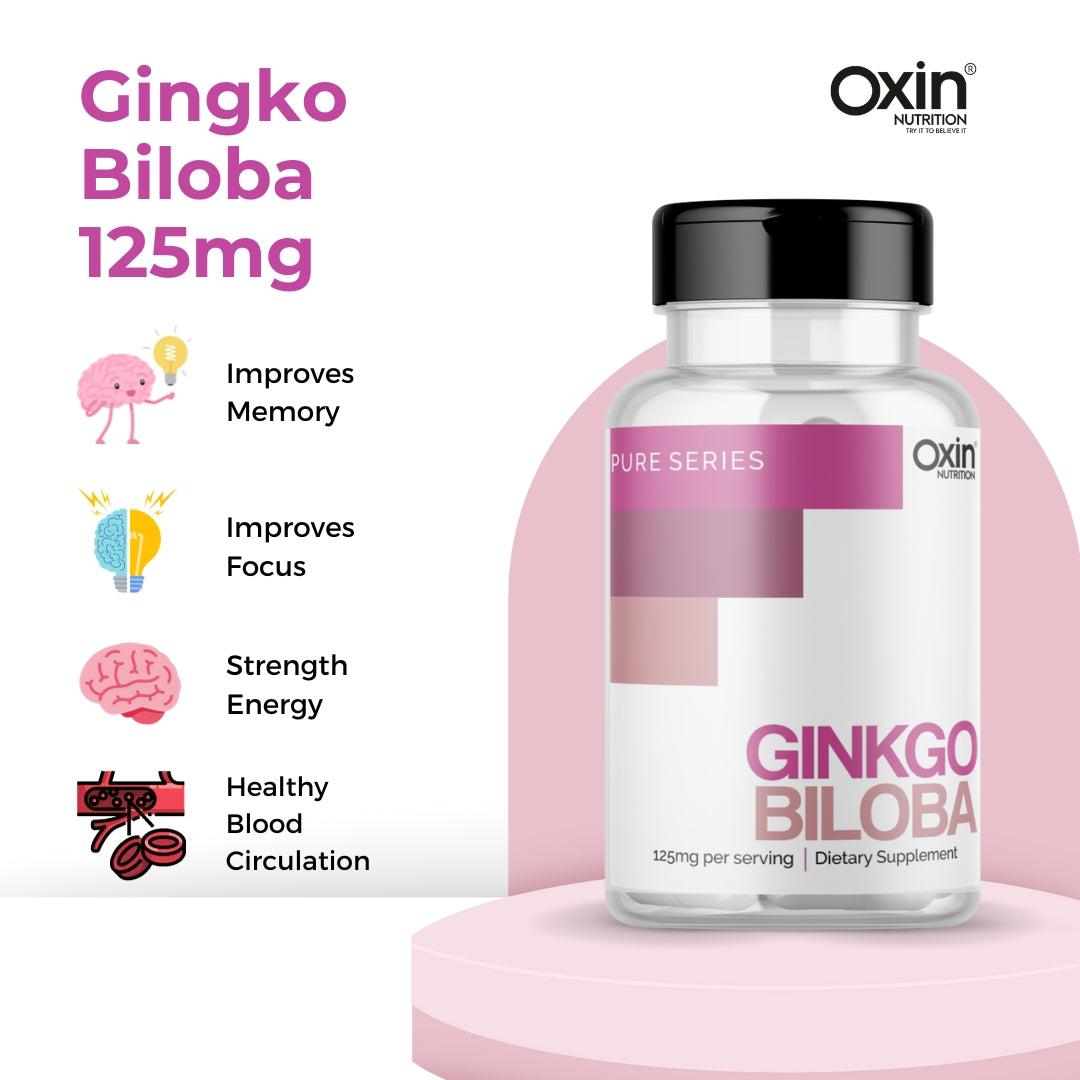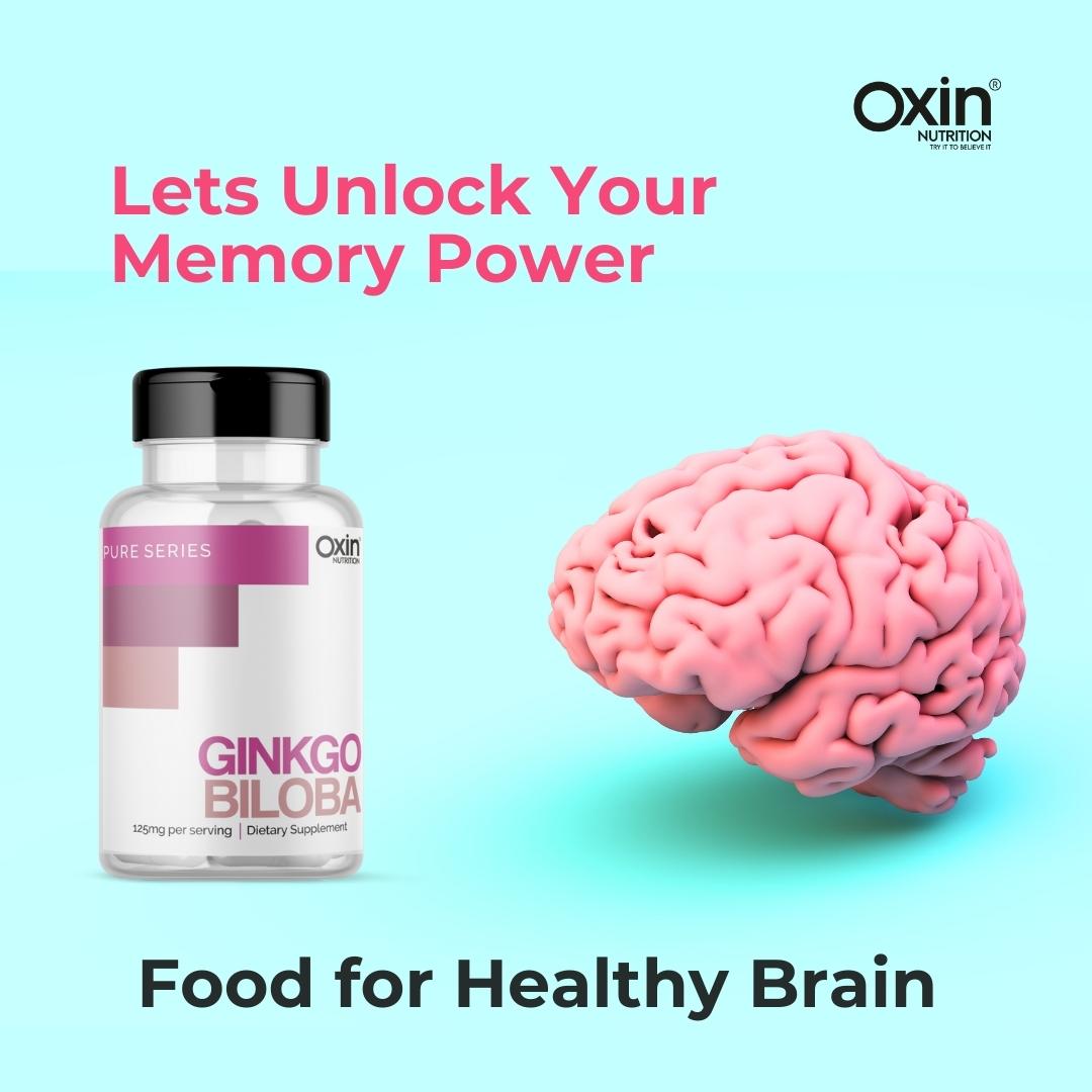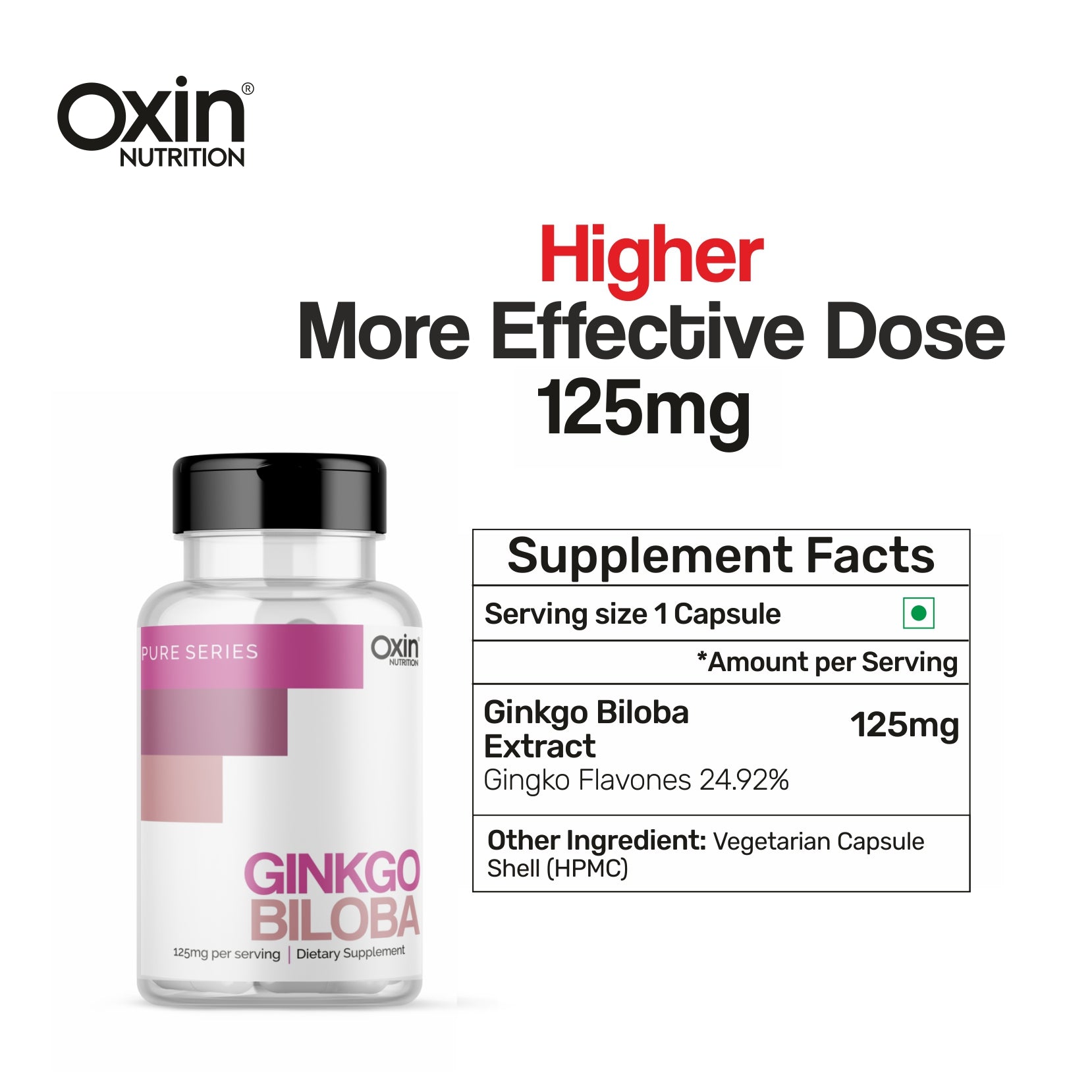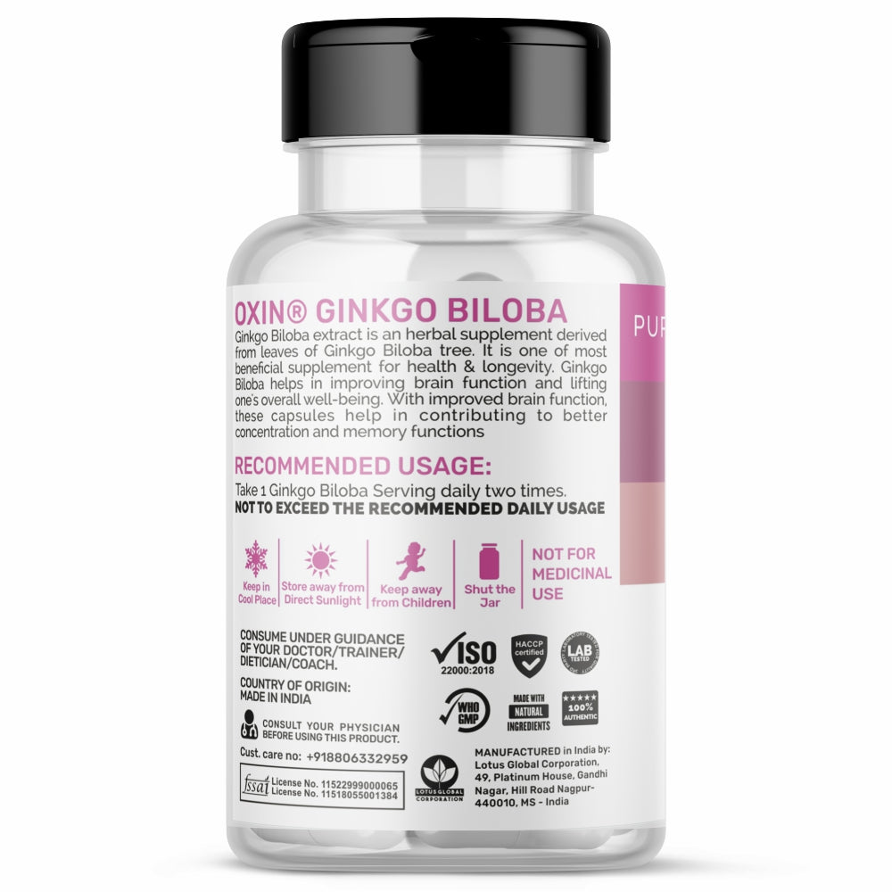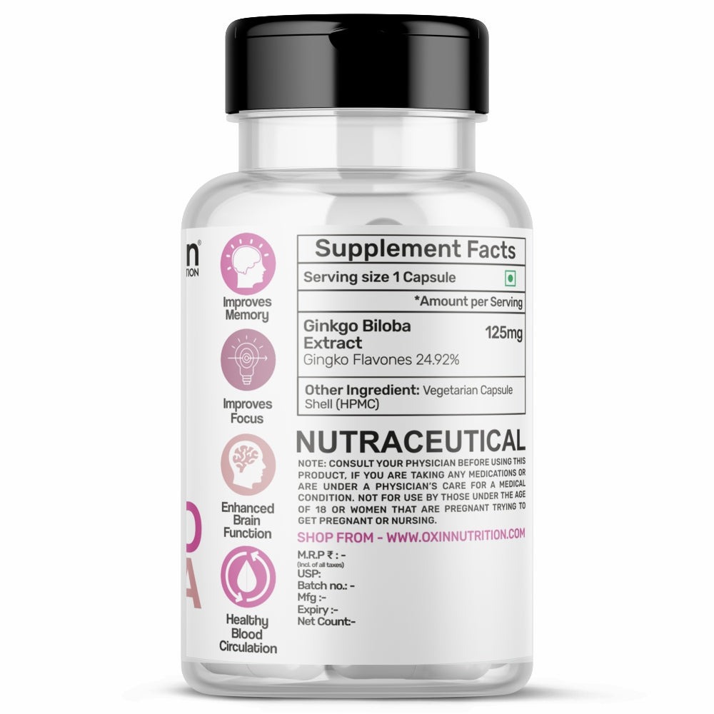 Oxin Nutrition® Ginkgo Biloba 125mg Capsule for Healthy Brain Function, Better Concentration, Memory & learning