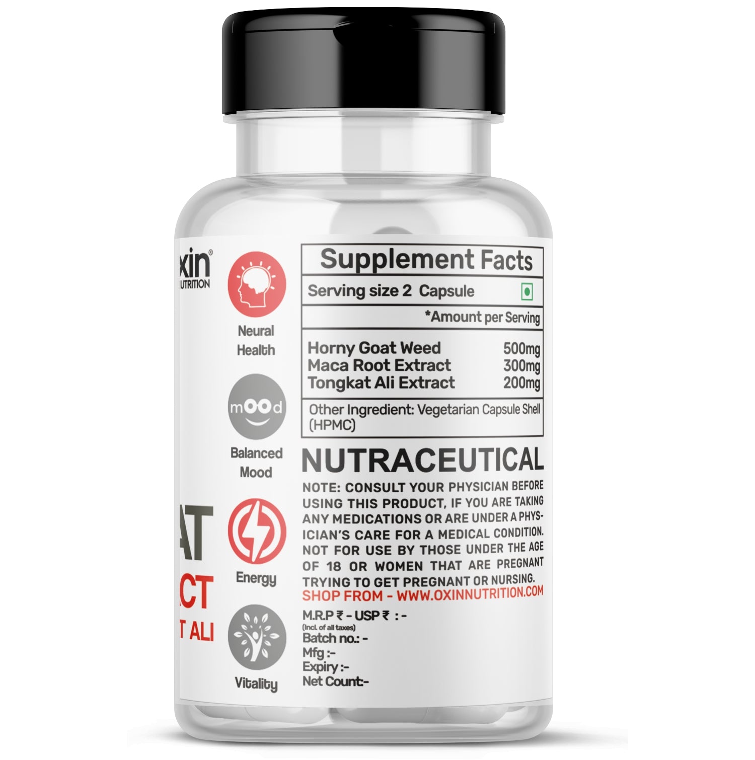 Oxin Nutrition® Horny Goat Weed Extract with MACA Root & Tongkat Ali 200:1 Capsules