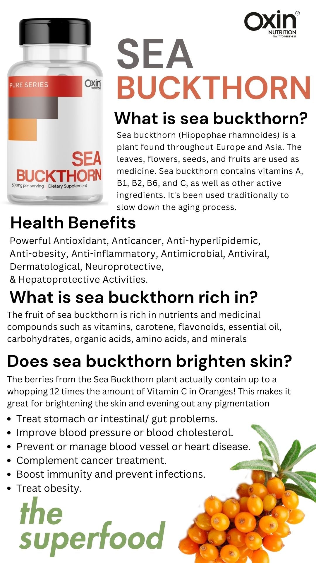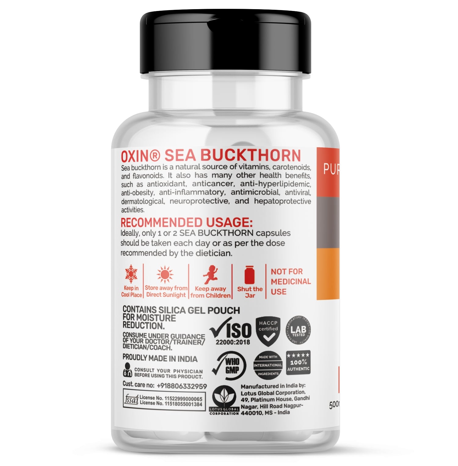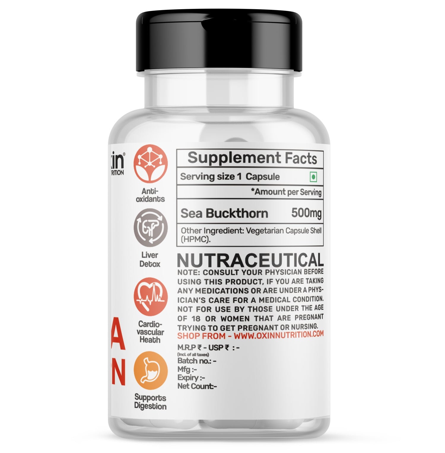 Oxin Nutrition® Sea Buckthorn Extract 500mg Veg Supplement Capsules | Rich Source of Omega, Supports Digestion, Cardiovascular Health & Liver Detox