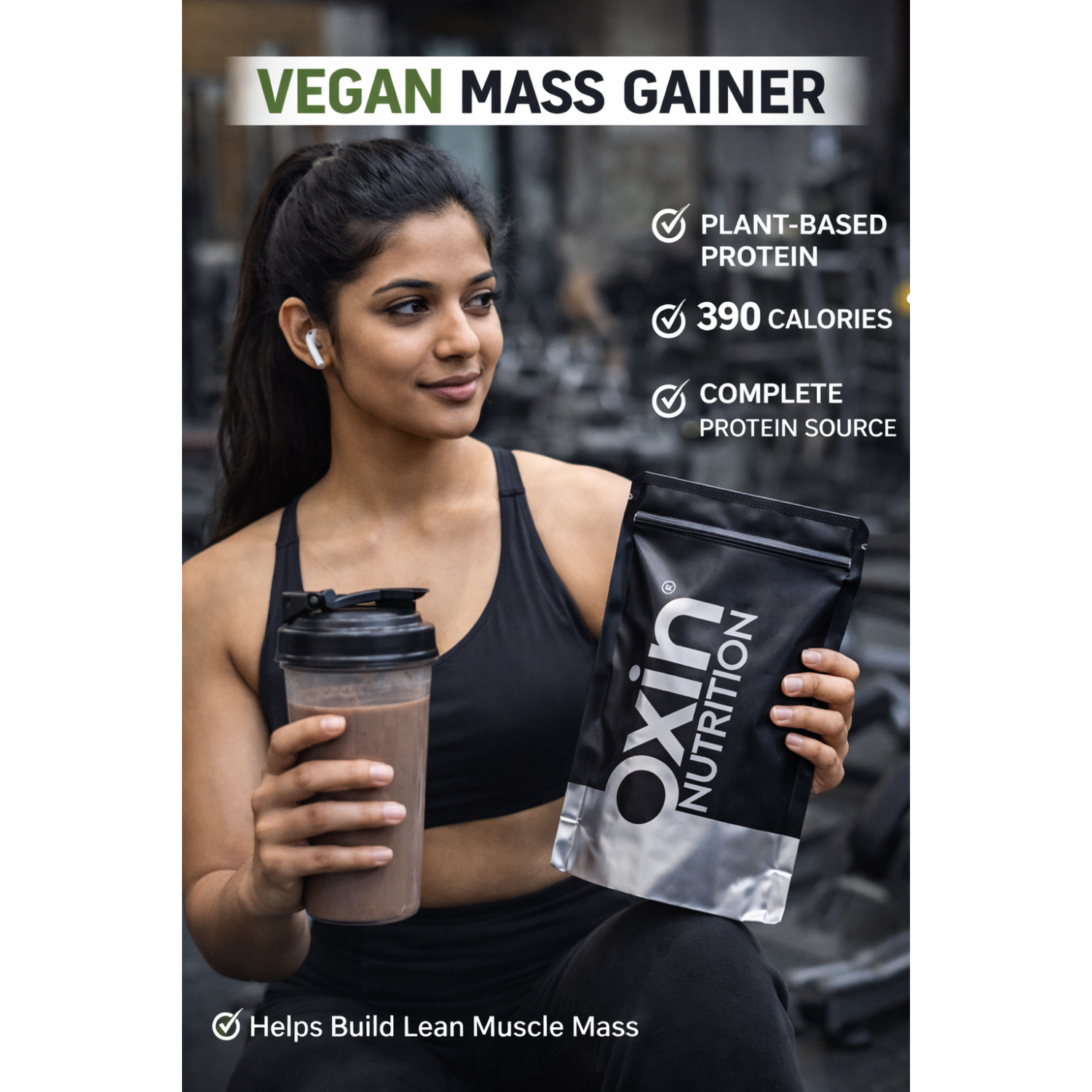 Oxin Nutrition® Vegan Mass Gainer is a top vegan mass gainer in India, offering 20g plant protein and 390 kcal per 100G for clean and healthy weight gain without whey or dairy.