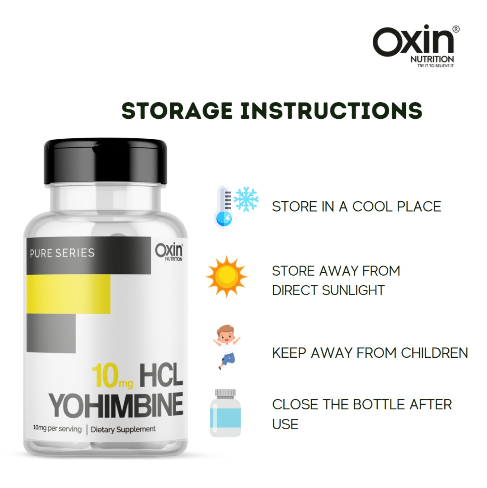 • THE PURITY – Oxin Nutrition Yohimbine HCL 10mg is in its purest form and derived from vegetarian source and well tested in lab for purity and potency.