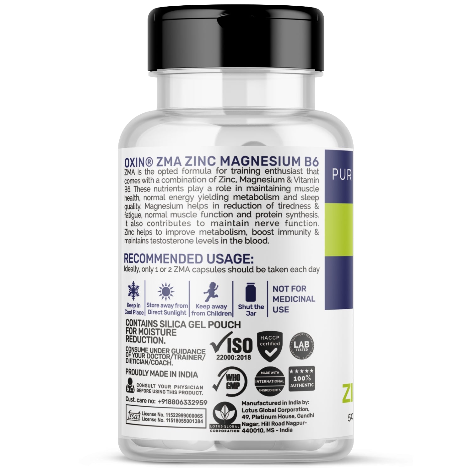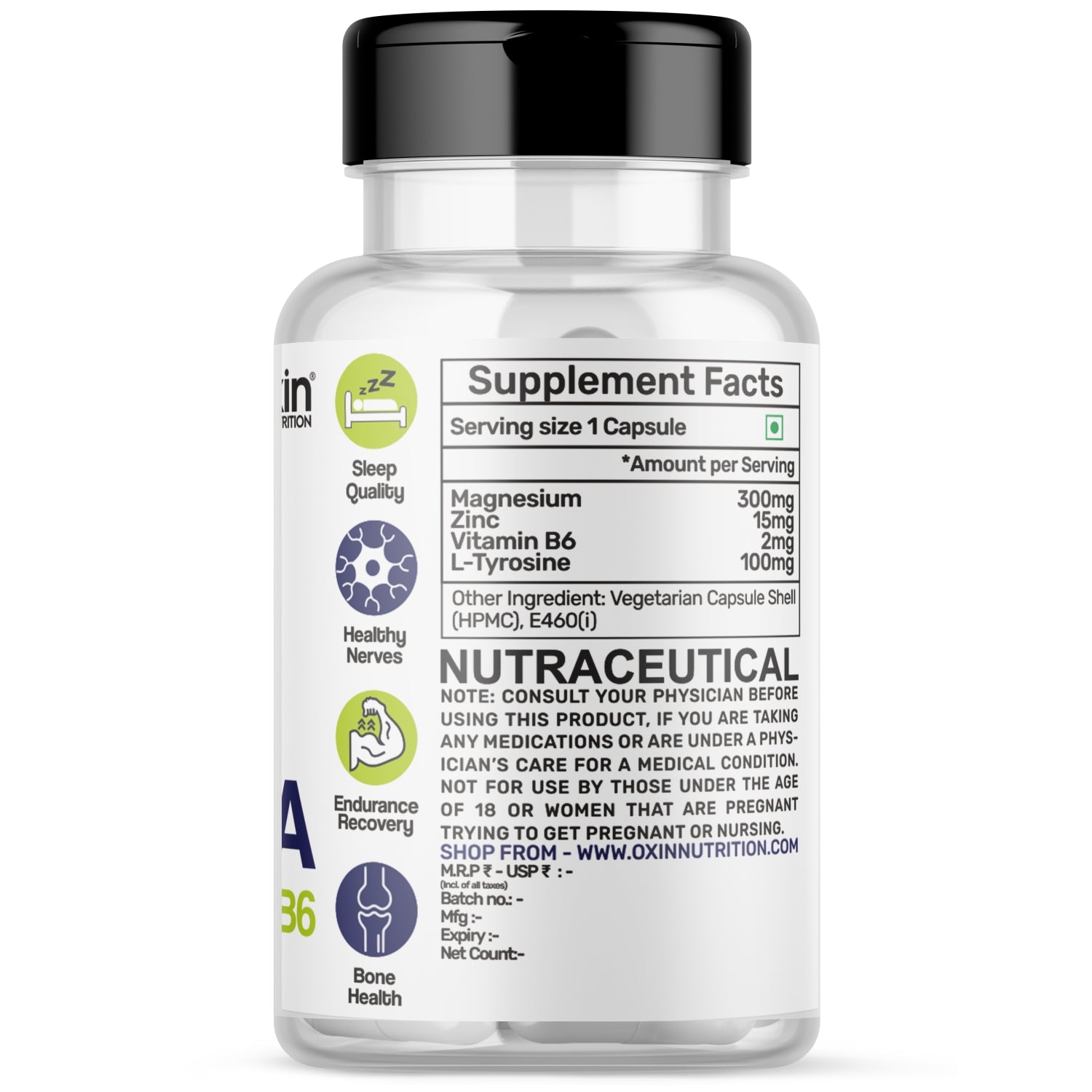 Oxin Nutrition® ZMA Zinc Magnesium Vitamin B6 L-Tyrosine Muscle Strength & Recovery Sleep Nerve Health