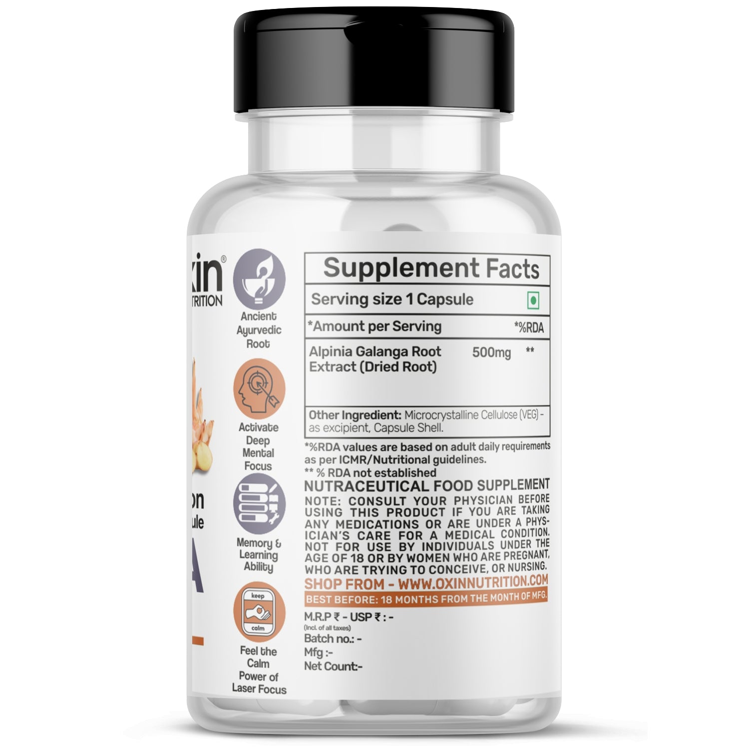 Oxin Nutrition Alpinia Galangal THAI GINGER 1000mg Extract Capsule - Cognitive Support Memory & Focus Mood & Stress