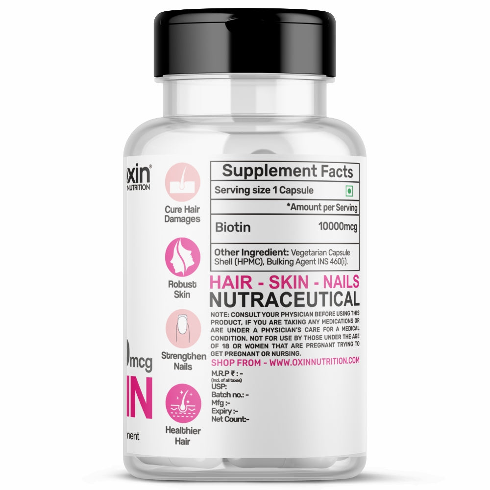 • BIOTIN FOR HAIR, SKIN & NAILS: Oxin Biotin is a Vitamin B7 dietary supplement that helps to enhance the health of your hair, skin, and nails.