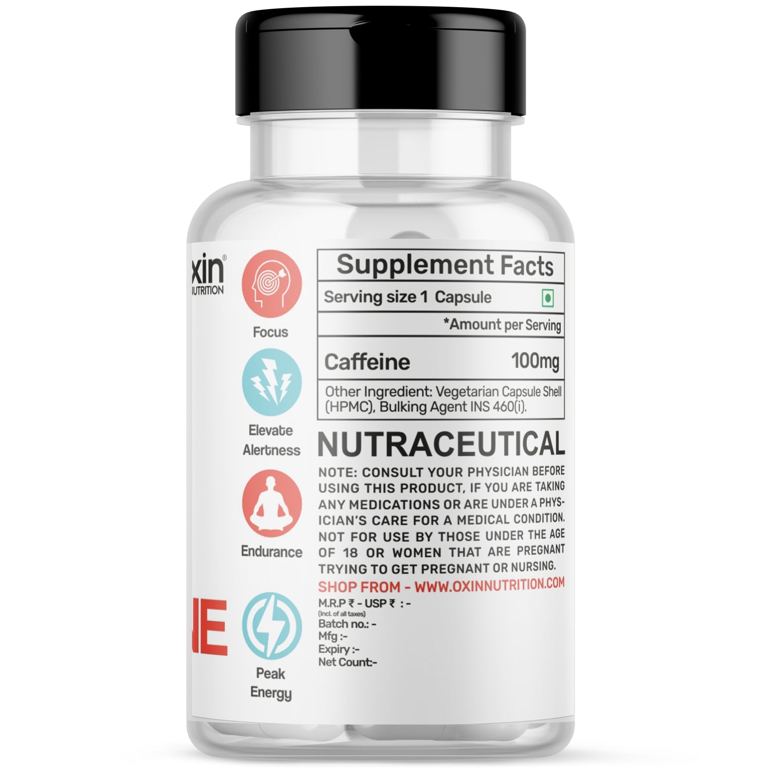 Oxin Nutrition Caffeine 100mg Capsules – Clean Energy & Focus Support