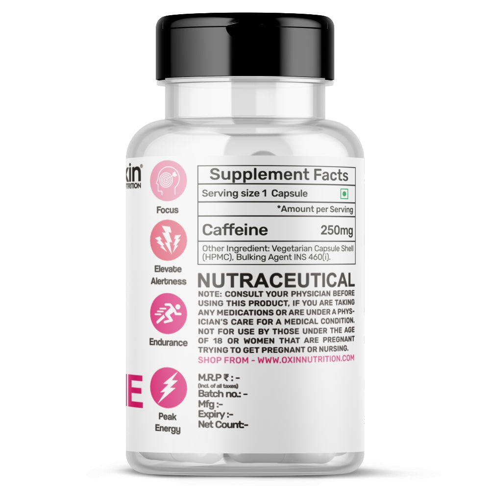 • FOCUS & ALERTNESS: Oxin Nutrition Caffeine helps in improving focus and mental alertness
