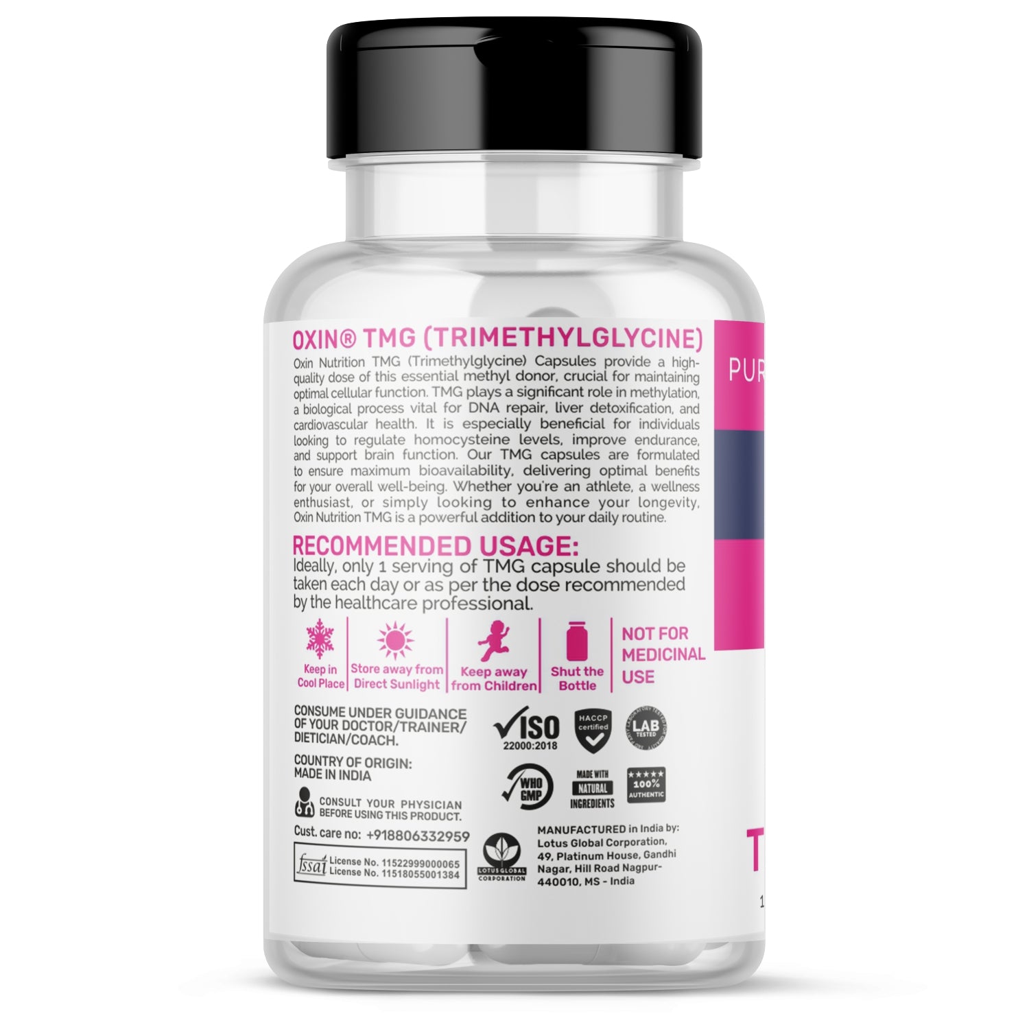 Boost your health with Oxin Nutrition TMG Trimethylglycine, a powerful supplement designed to support liver function, promote energy levels,