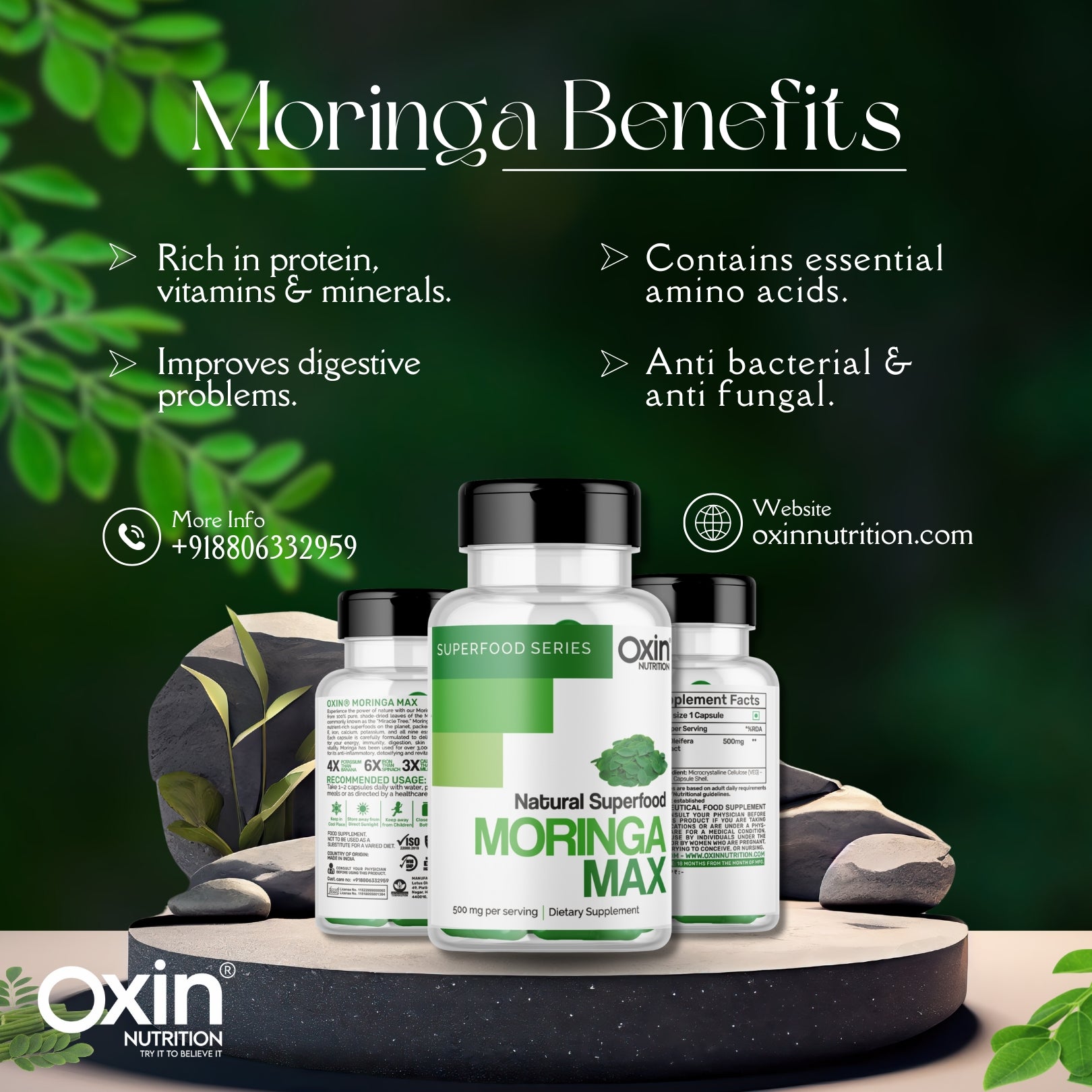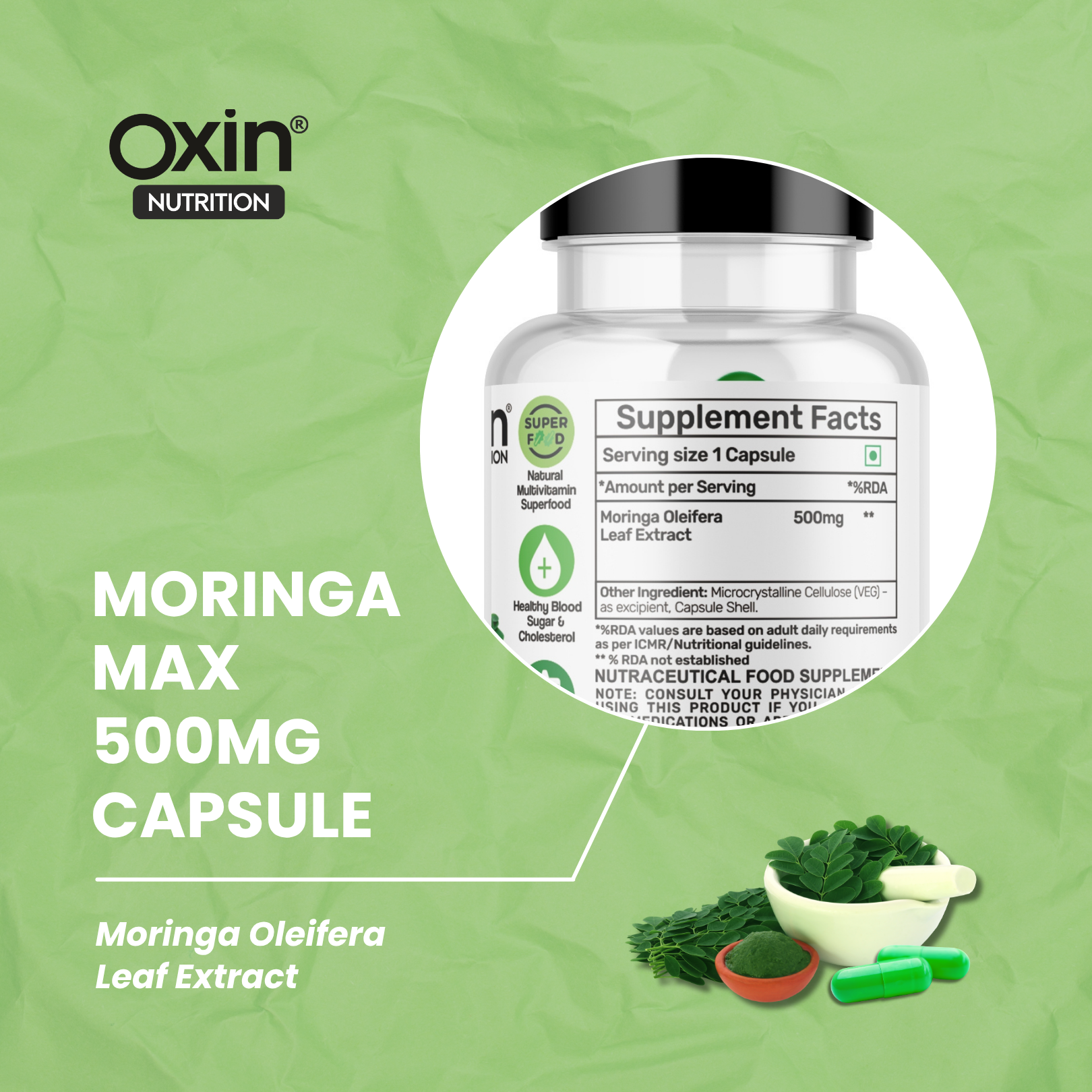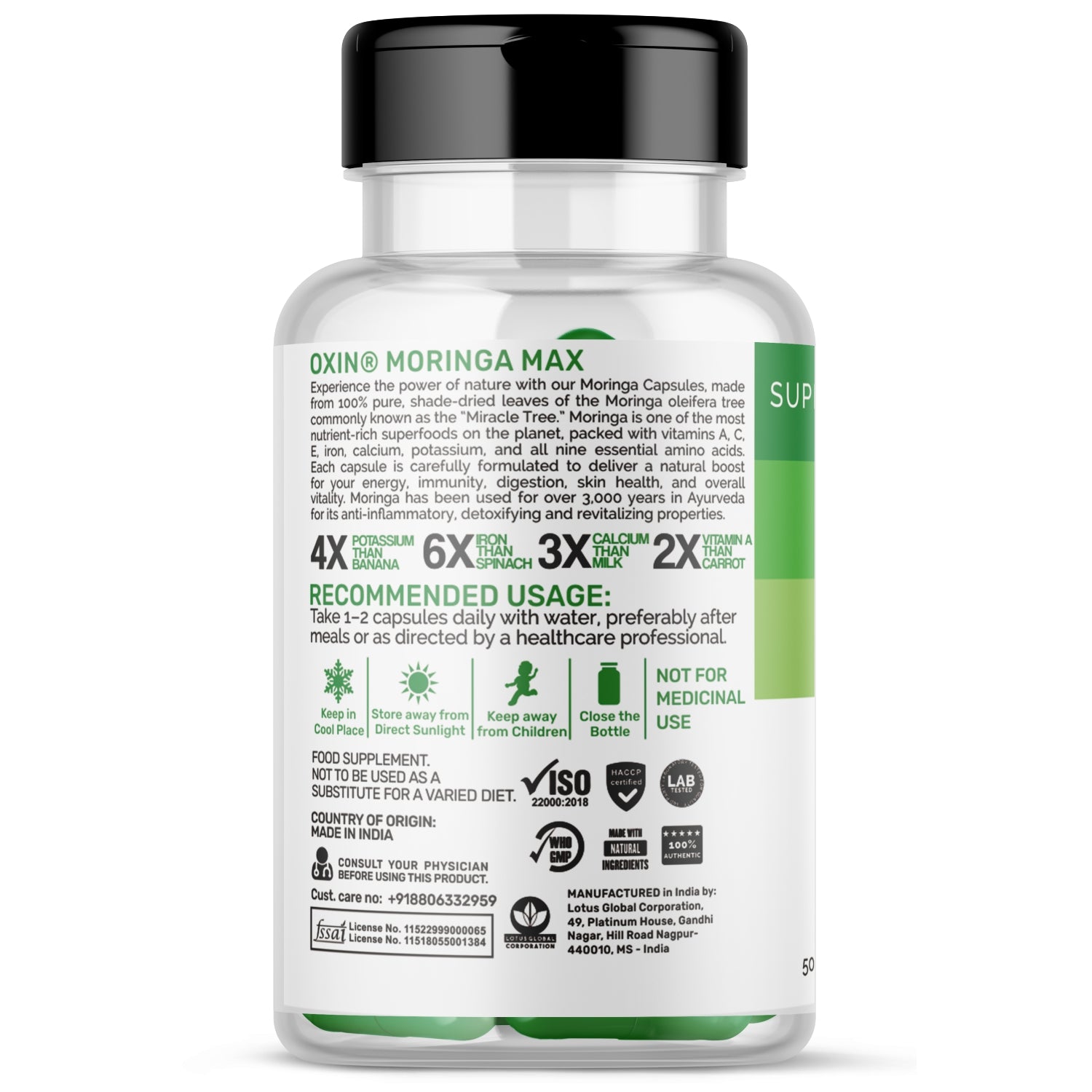 Oxin® Nutrition Moringa Capsules 100% Pure Leaf Powder | Natural Energy, Immunity & Wellness Boost