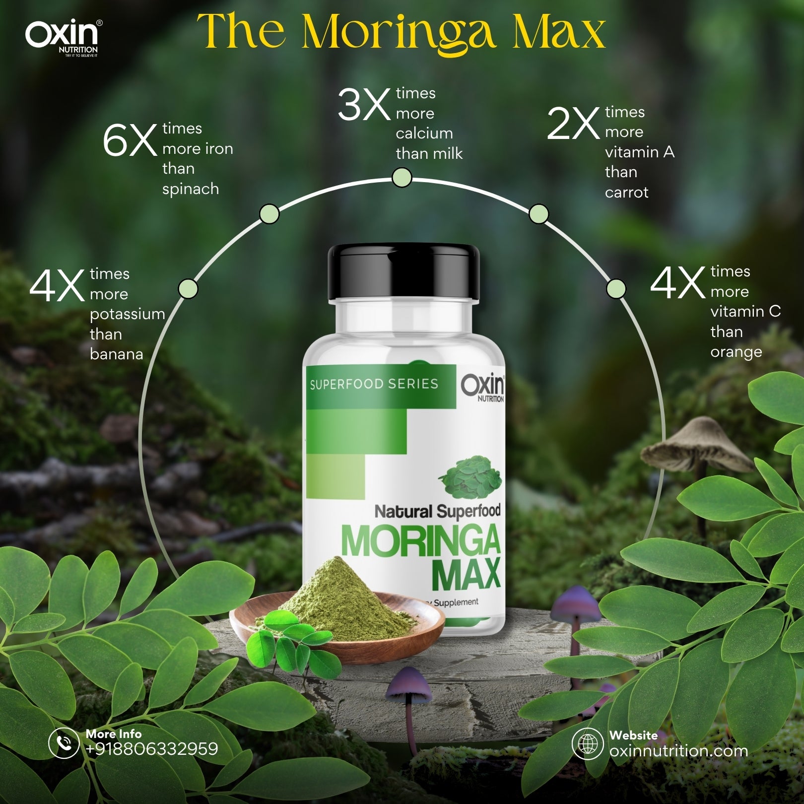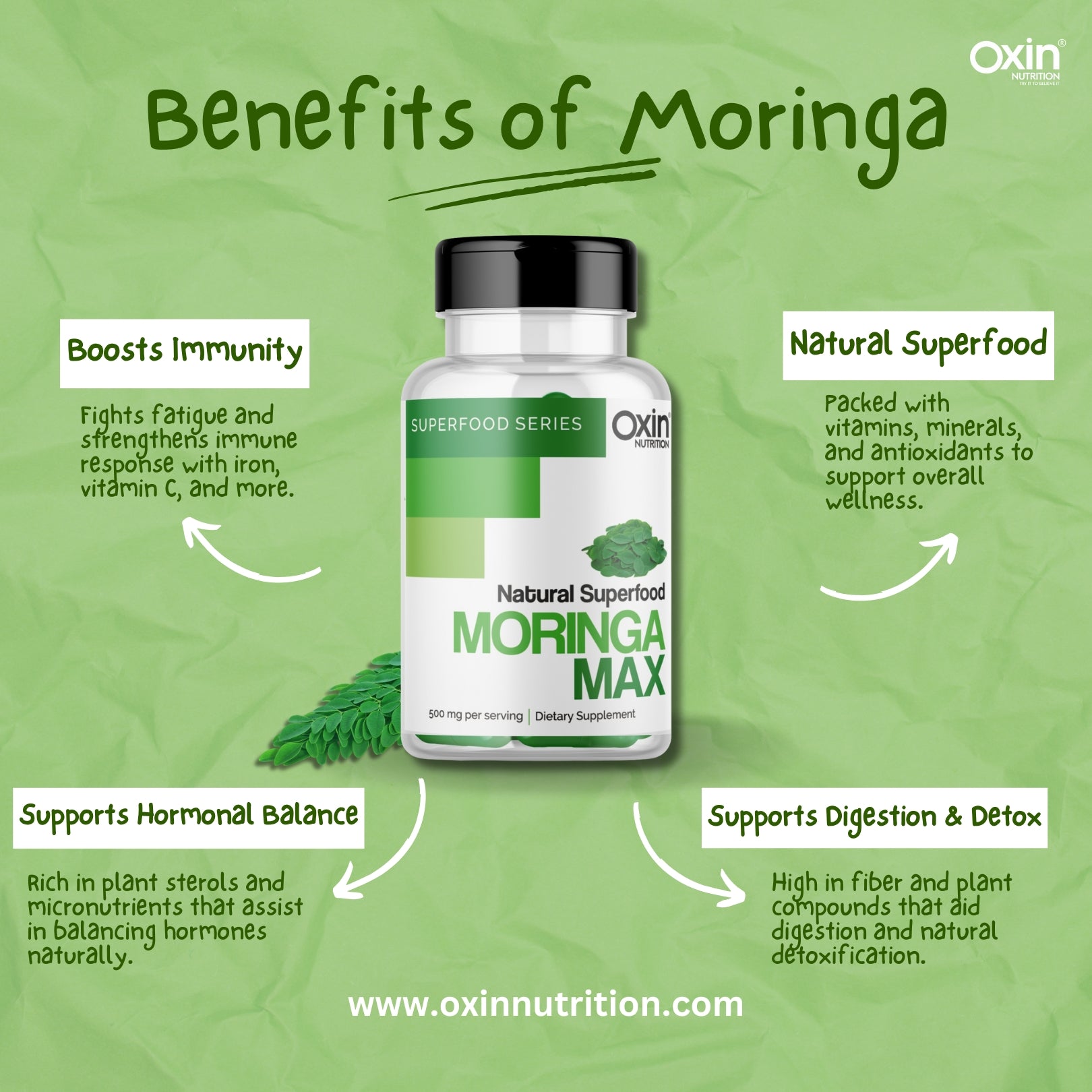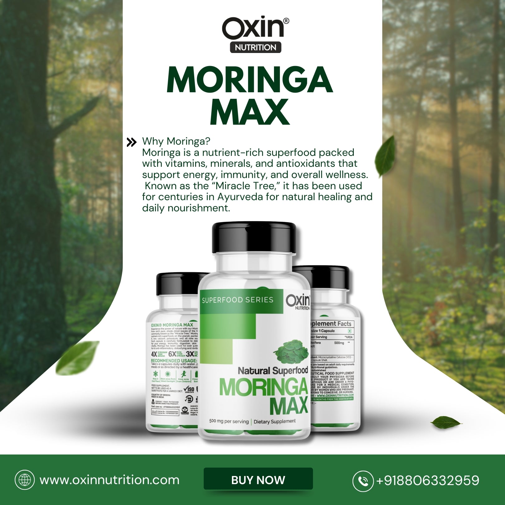 Oxin® Nutrition Moringa Capsules 100% Pure Leaf Powder | Natural Energy, Immunity & Wellness Boost